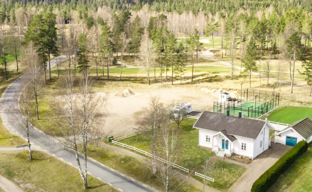 Våra ställplatser hittar ni mitt på anläggningen. Nära till toalett samt vatten och endast en pitch från klubbens driving range.